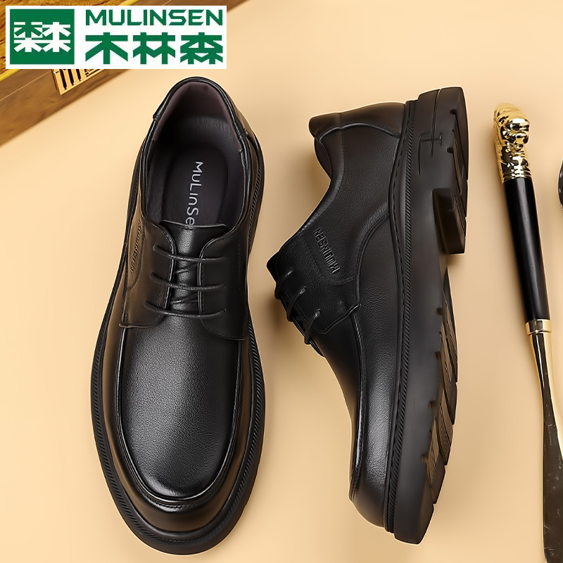 木林森皮鞋男款2025冬季英伦商务正装男鞋真皮休闲通勤德比鞋子男
