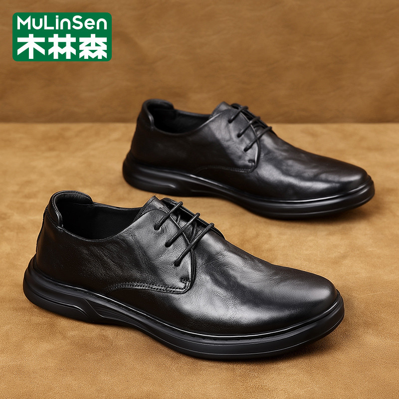 木林森皮鞋男2026新款春季商务英伦休闲头层牛皮爸爸软底工作板鞋