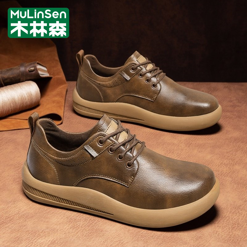 木林森皮鞋男春季2026新款休闲商务复古大头宽楦爸爸通勤工作板鞋