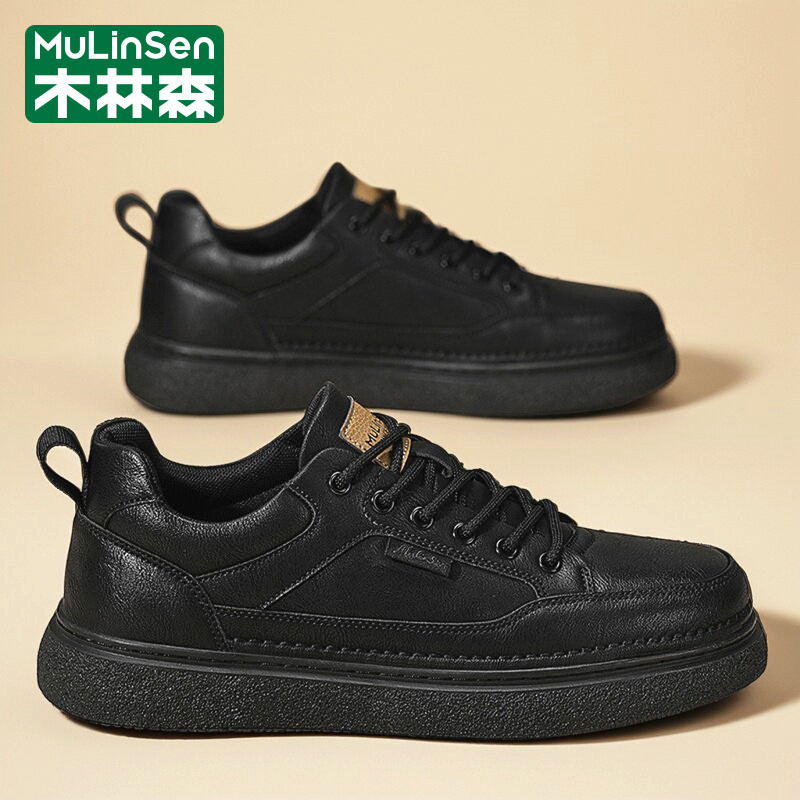 木林森男鞋2025秋冬季新款男运动鞋牛皮百搭男士皮鞋商务休闲鞋子