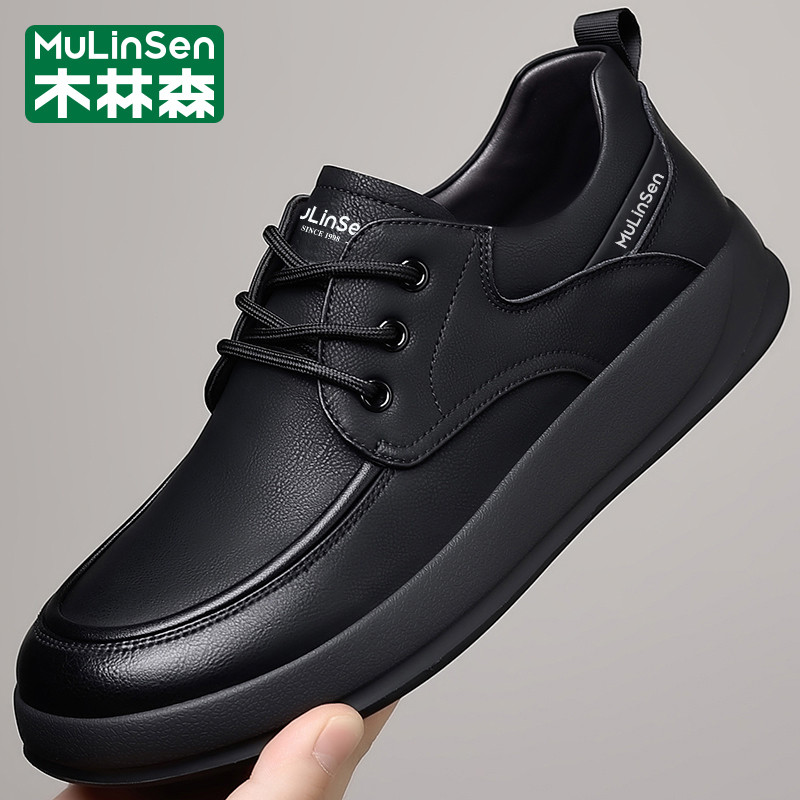 木林森皮鞋男春季2026新款运动休闲商务大头宽楦爸爸厚底耐磨板鞋
