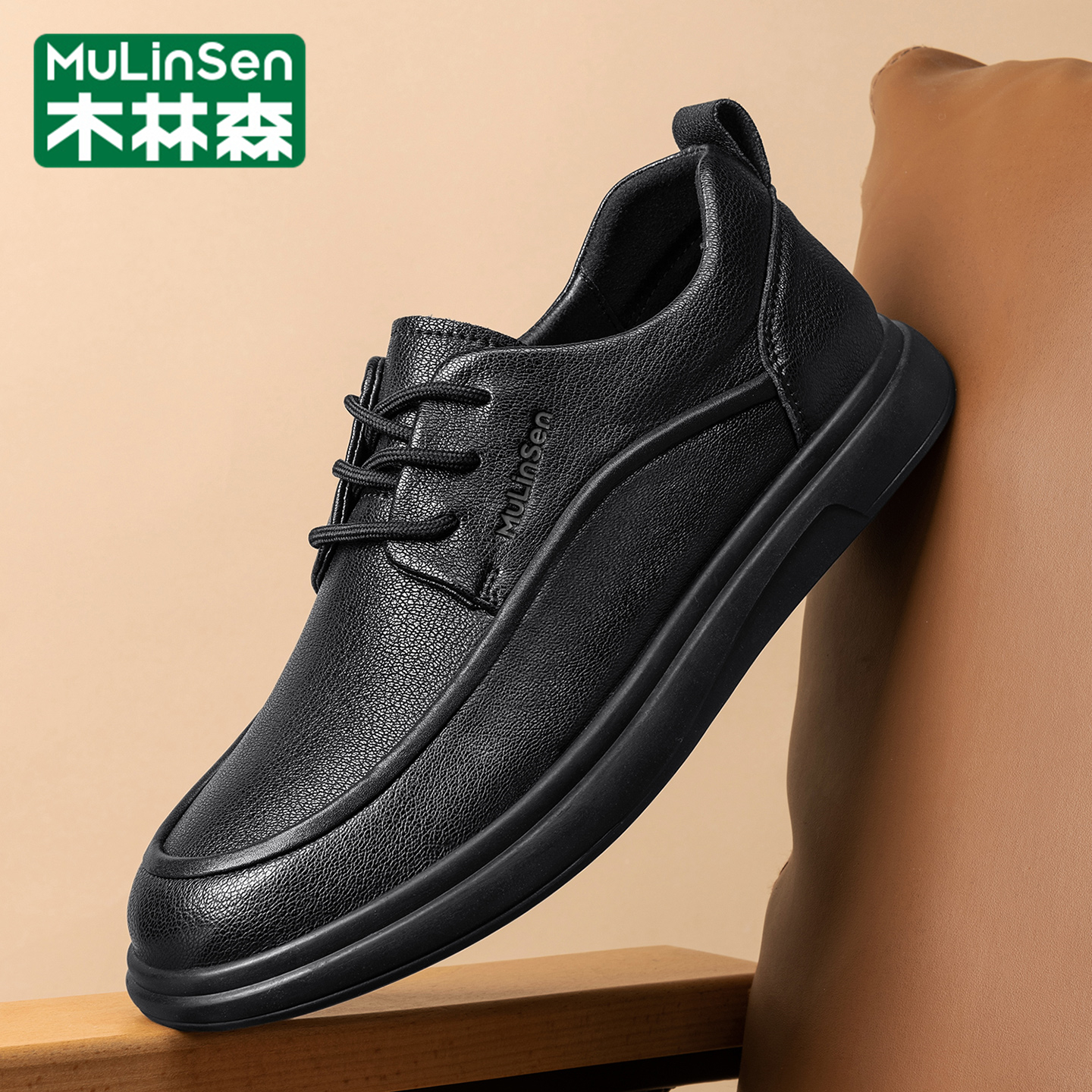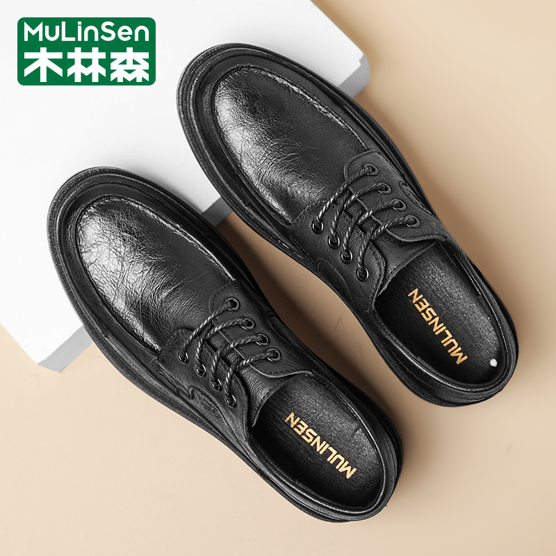木林森皮鞋男冬季2025新款休闲真皮商务英伦正装厚底工作上班板鞋