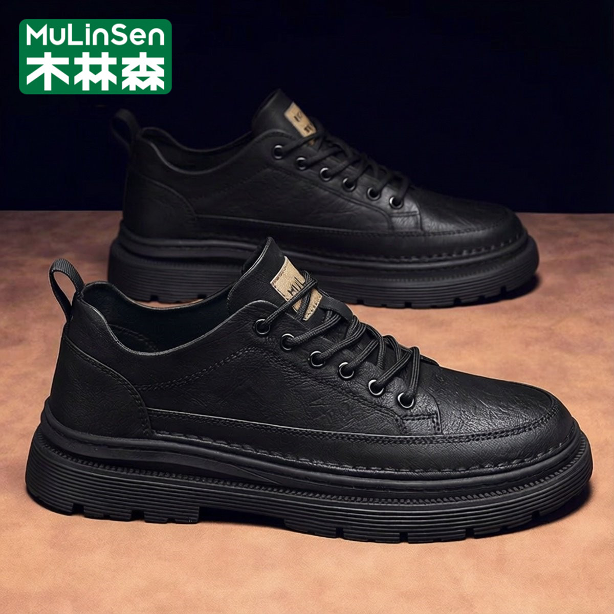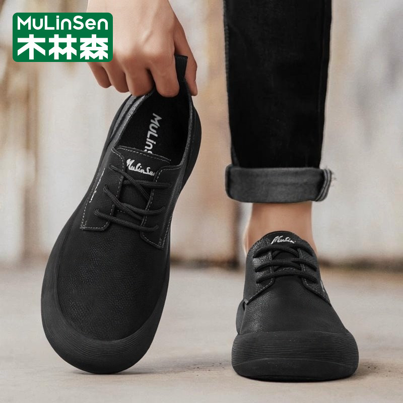 木林森皮鞋男春季2026新款运动休闲商务大头宽楦工作厚底耐磨板鞋