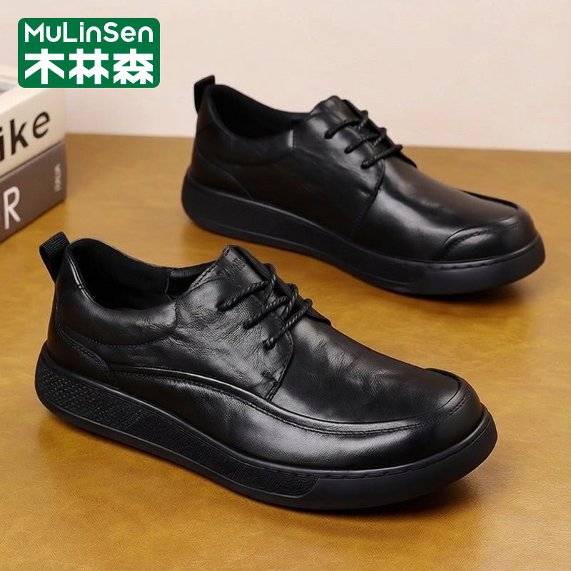 木林森皮鞋男2026年新款春季商务休闲通勤公务员头层牛皮爸爸板鞋