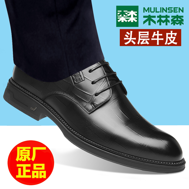 木林森皮鞋男款头层牛皮高档商务休闲鞋厚底防滑软底中老年爸爸鞋