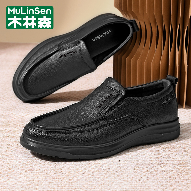 木林森皮鞋男商务正装真皮套脚男士休闲鞋爸爸防滑耐磨职场工作鞋