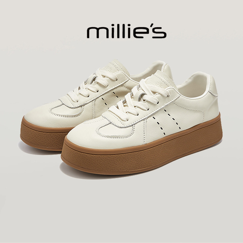 MILLIE'S/妙丽厚底韩版轻奢简约轻便舒适时尚休闲平底小白鞋秋季
