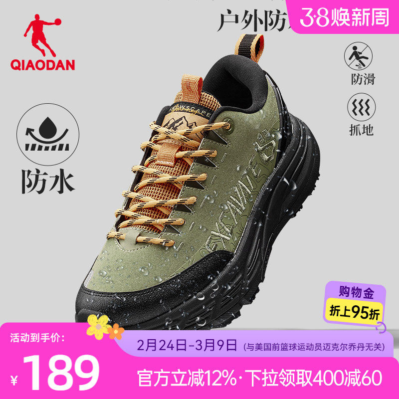 乔丹防水户外鞋男登山徒步鞋2026春季新款革面防滑轻便休闲运动鞋