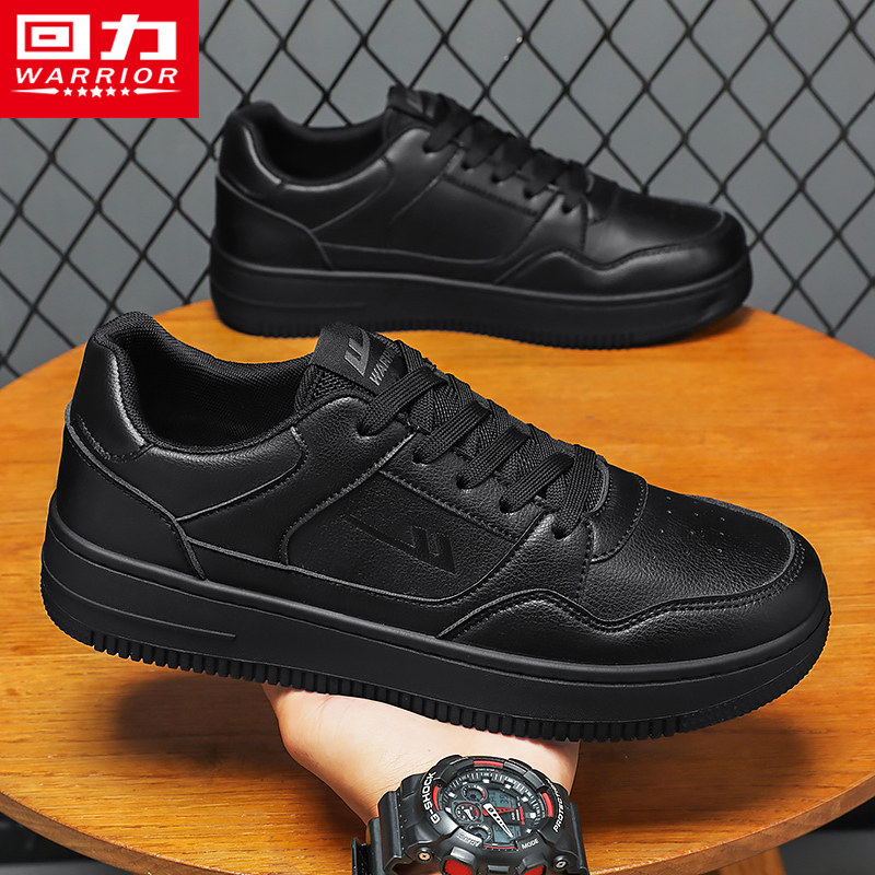 回力男鞋春季黑色耐脏板鞋运动厨房皮鞋工作上班防滑防水劳保黑鞋