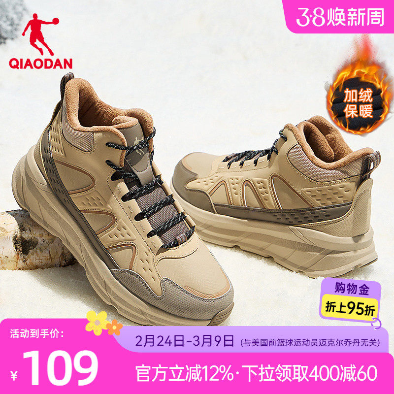 乔丹加绒男鞋户外防水雪地靴春季高帮新款保暖棉鞋徒步防滑运动鞋