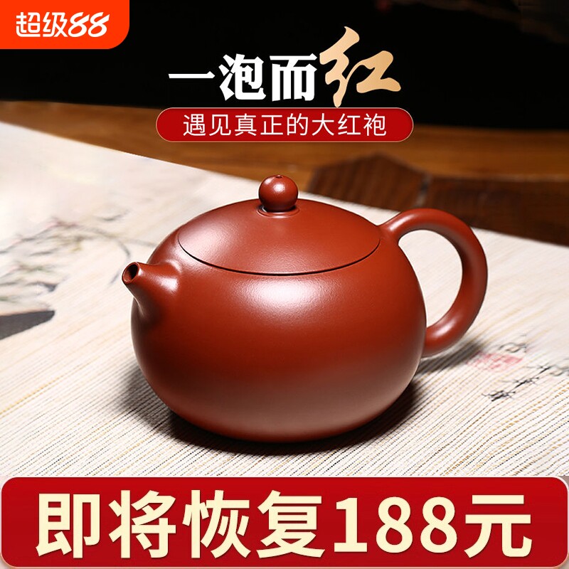 宜兴家用紫砂壶原矿大红袍全手工刻绘功夫茶壶茶具泡茶西施壶送礼