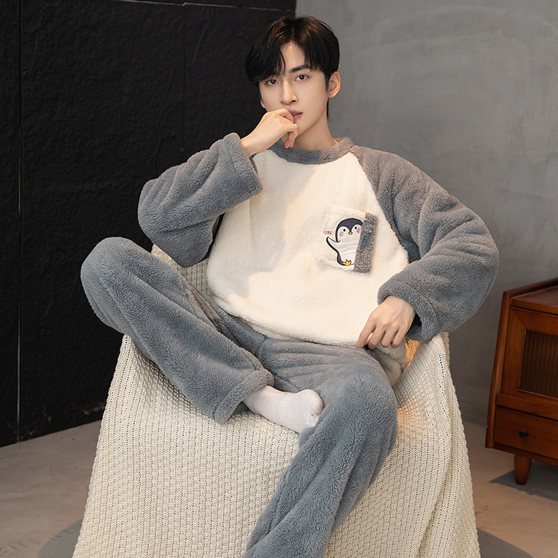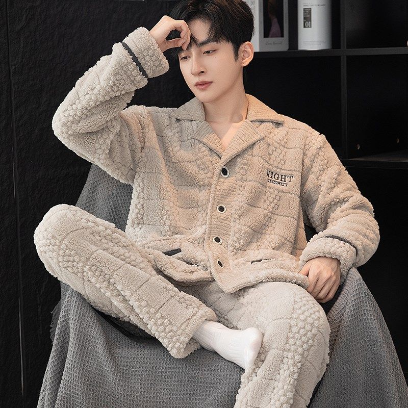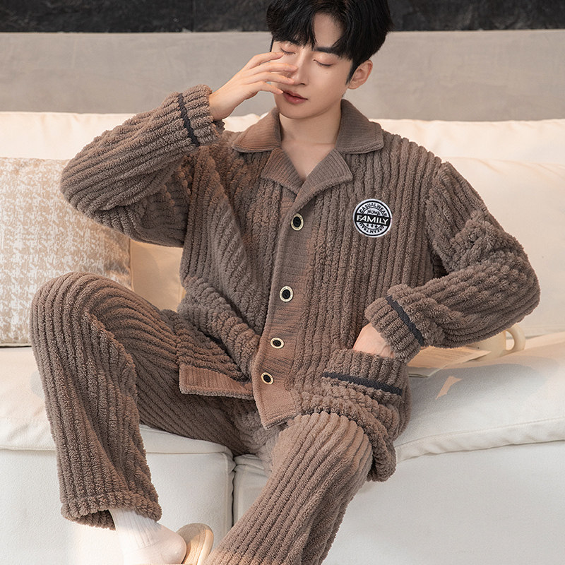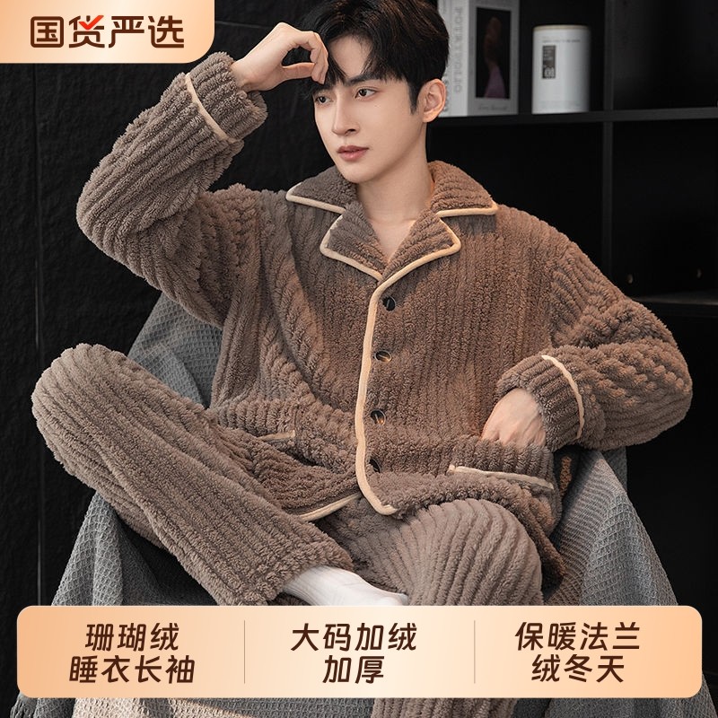- 加绒加厚珊瑚绒睡衣男