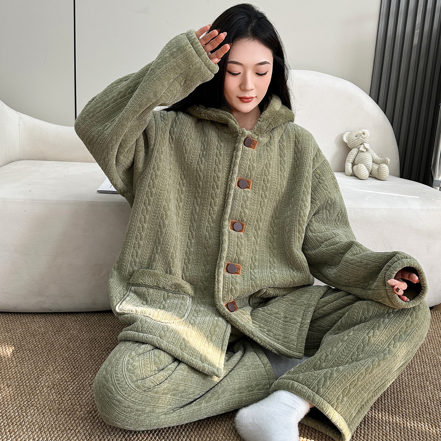 - 珊瑚绒加厚女套装