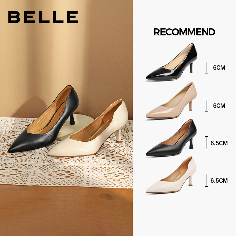 百丽女鞋子尖头软底高跟鞋女酒杯跟牛皮气质ol风女单鞋3DY16CQ3预