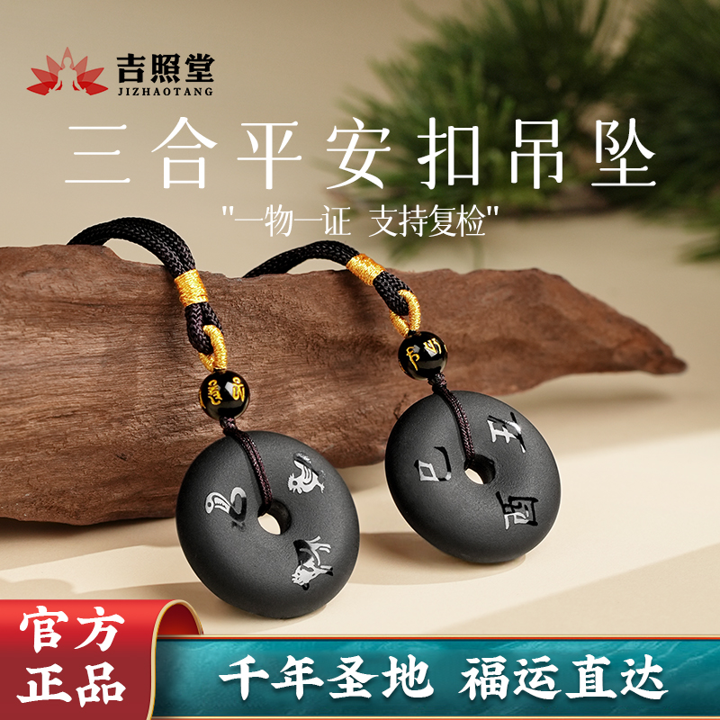 黑曜石吊坠十二生肖三合平安扣吊坠鼠龙虎马狗蛇鸡牛三合贵人吊坠