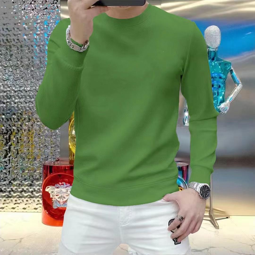 高端重磅双丝光棉男士圆领套头亮色卫衣时尚纯色绿色长袖大码上衣
