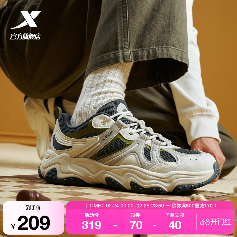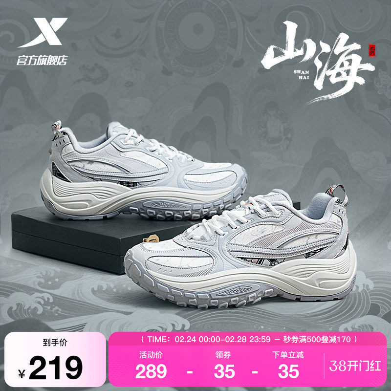 特步山海丨男鞋夏季网面休闲鞋厚底复古老爹鞋轻便百搭户外运动鞋