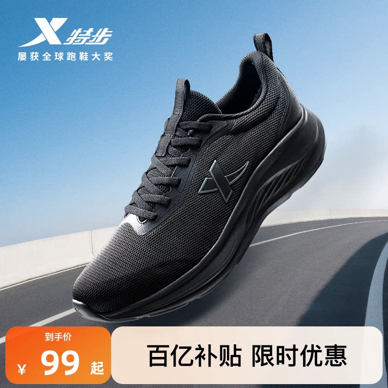 特步跑步鞋男夏季新款黑色运动鞋轻便软底爸爸减震透气网面休闲鞋