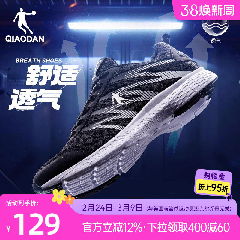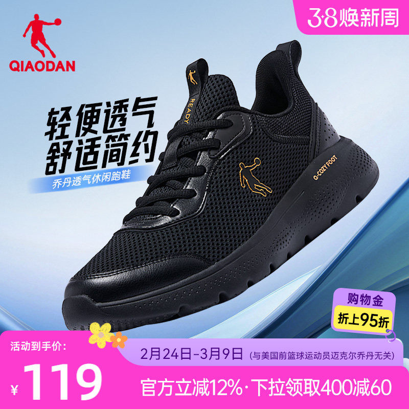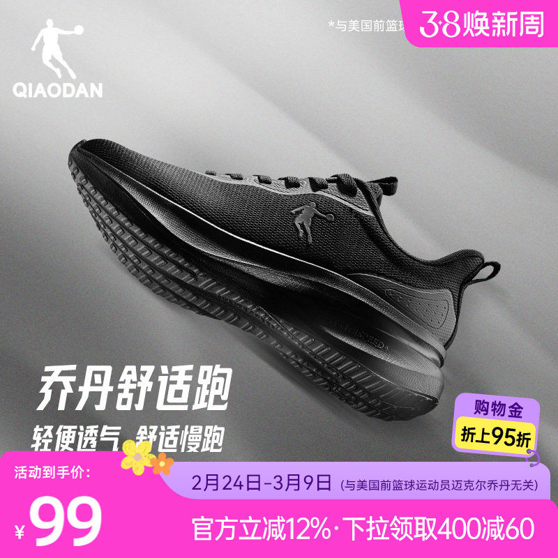 乔丹夏季网面透气运动鞋男鞋跑步鞋轻便软底减震休闲黑色爸爸跑鞋