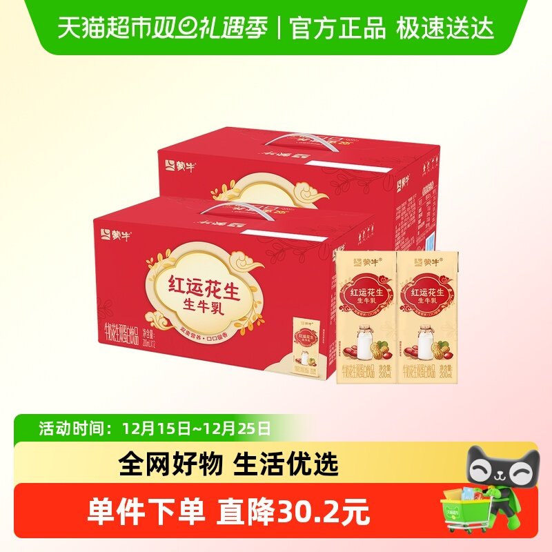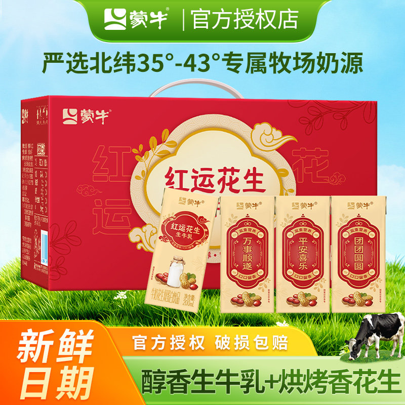 11月产蒙牛牛奶红运花生双蛋白饮品苗条装200ml×12盒*整箱礼盒装