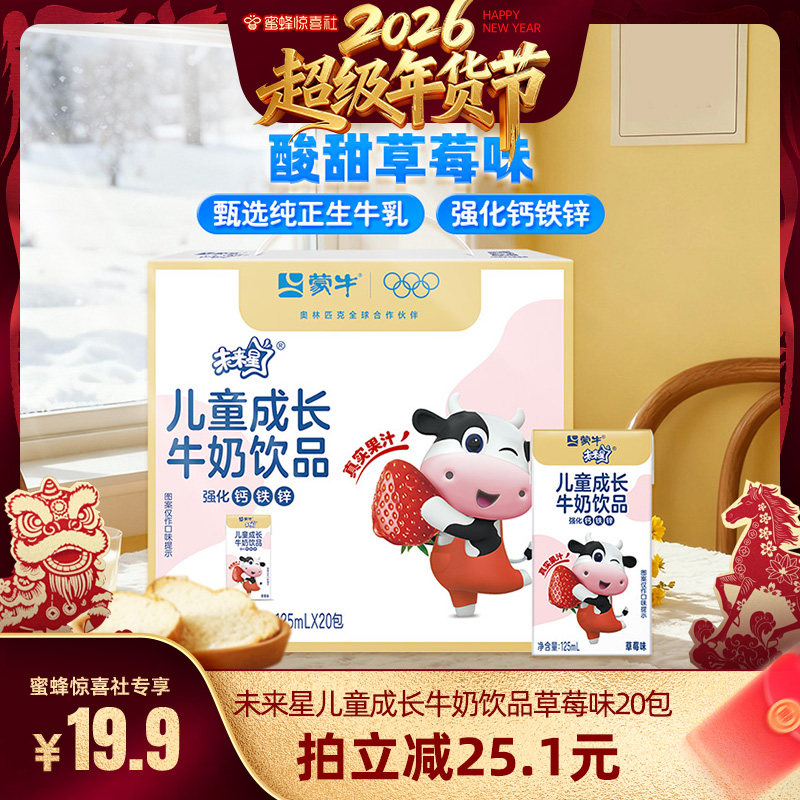 下拉页领取优惠蒙牛三只小牛A2β-酪蛋白果蔬牛乳4盒儿童牛奶