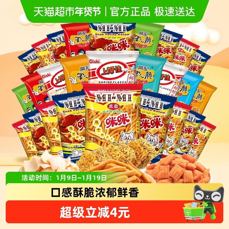 正宗咪咪虾条年货零食大礼包上好佳鲜虾片常记干脆面40包组合装