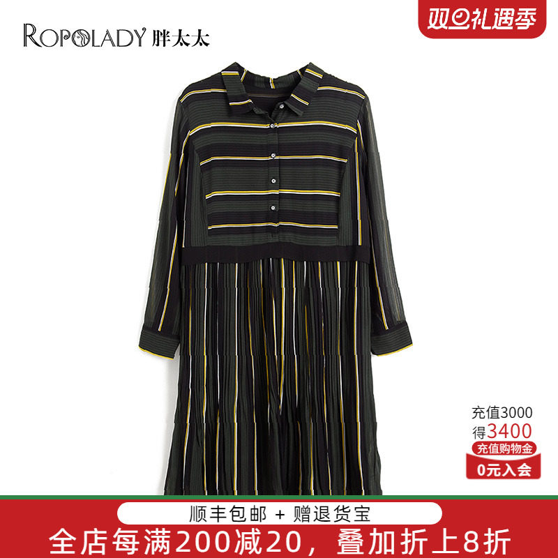胖太太大码女装简约春装新品雪纺条纹长袖翻领潮连衣裙417119041