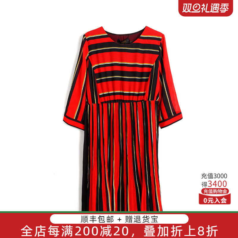 胖太太大码女装时尚春装新品雪纺百褶圆领七分袖连衣裙417118241