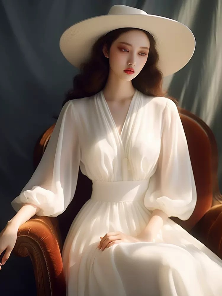 今年流行2025年春装新款茶系穿搭法式高级感气质雪纺长袖连衣裙
