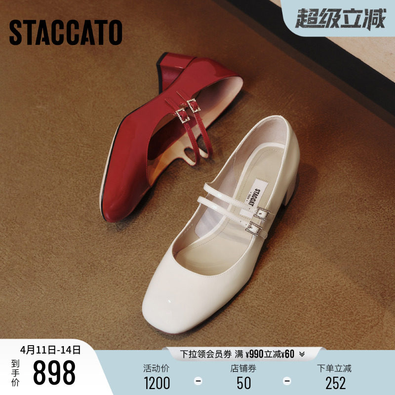 思加图2026新款甜心玛丽奶油鞋法式玛丽珍鞋粗跟单鞋女鞋EGR17AQ6