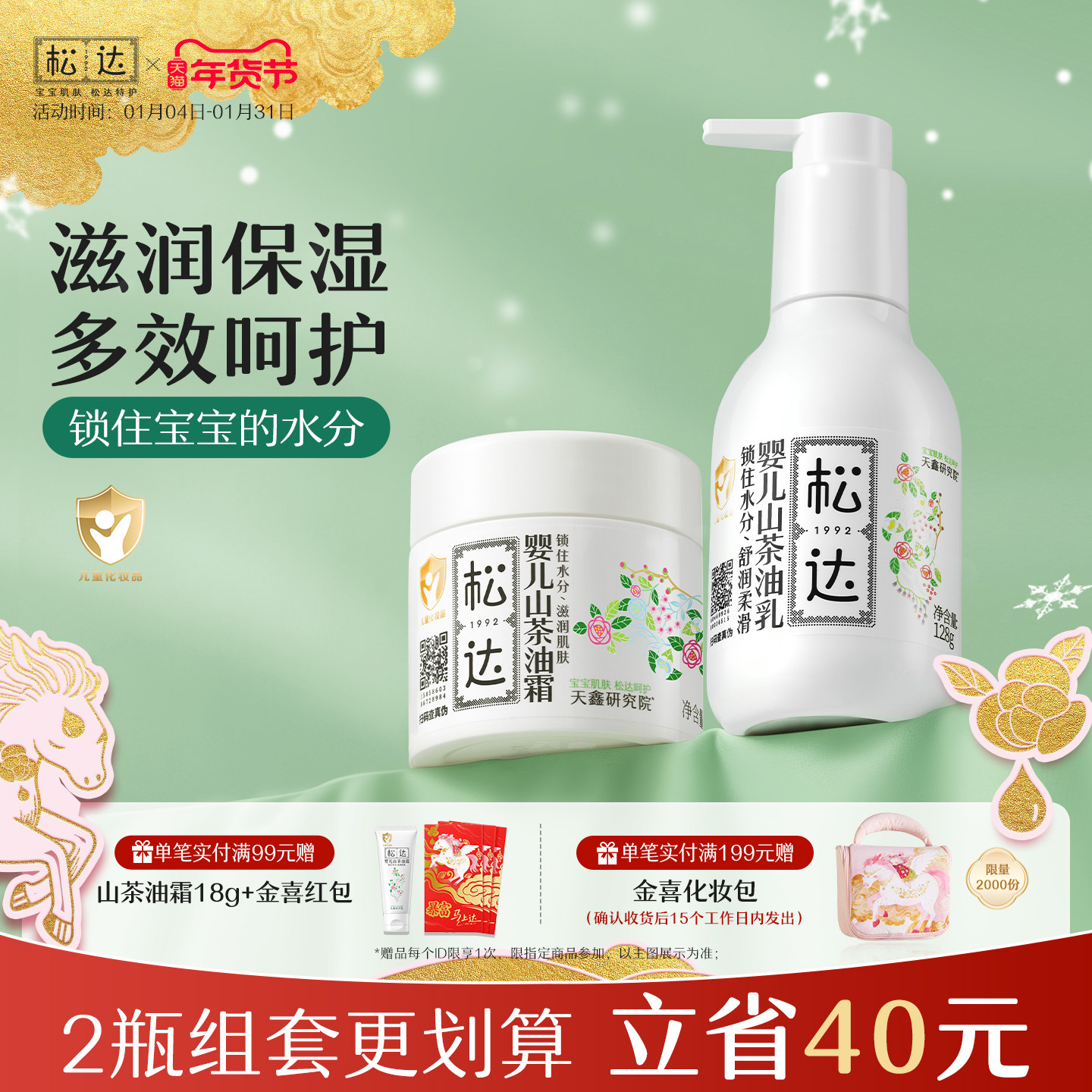松达婴儿护肤山茶油霜宝宝润肤霜儿童面霜新生儿保湿乳秋冬补水霜