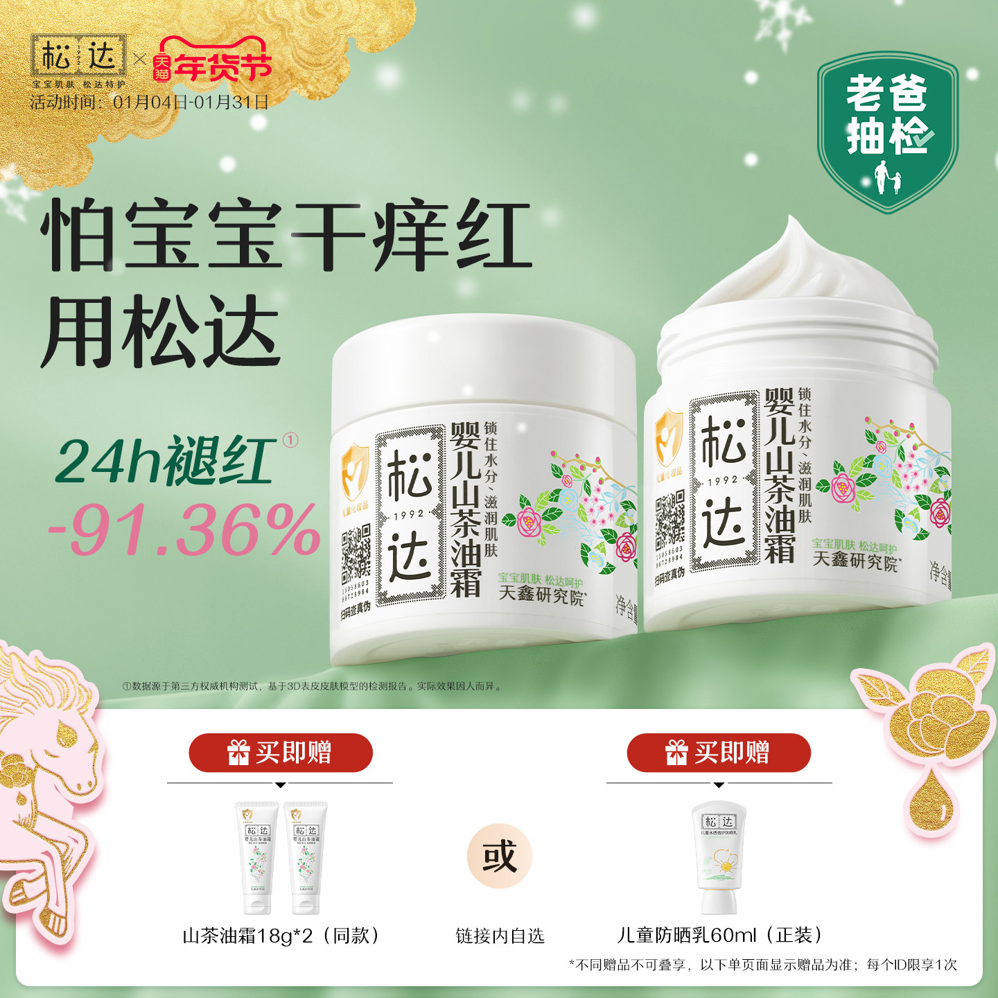 松达婴儿护肤山茶油霜儿童宝宝润肤霜补水保湿温和滋润秋冬霜-f