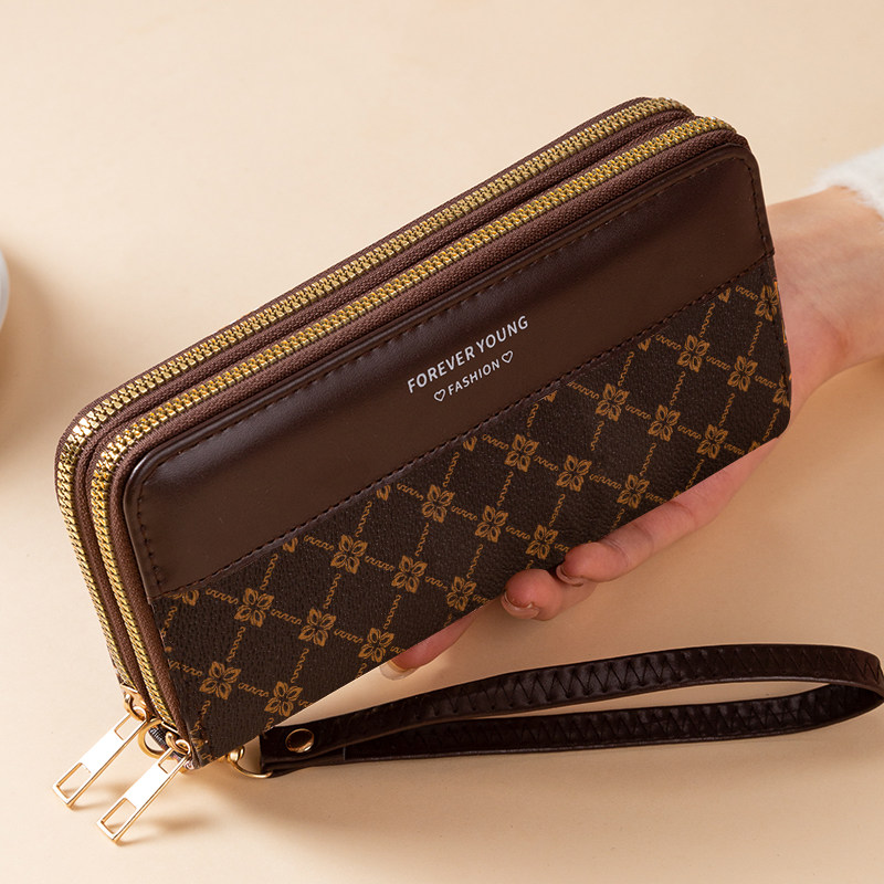 宝思妮女式长款钱包双拉链大容量手拿包多功能百搭时尚简约手机包