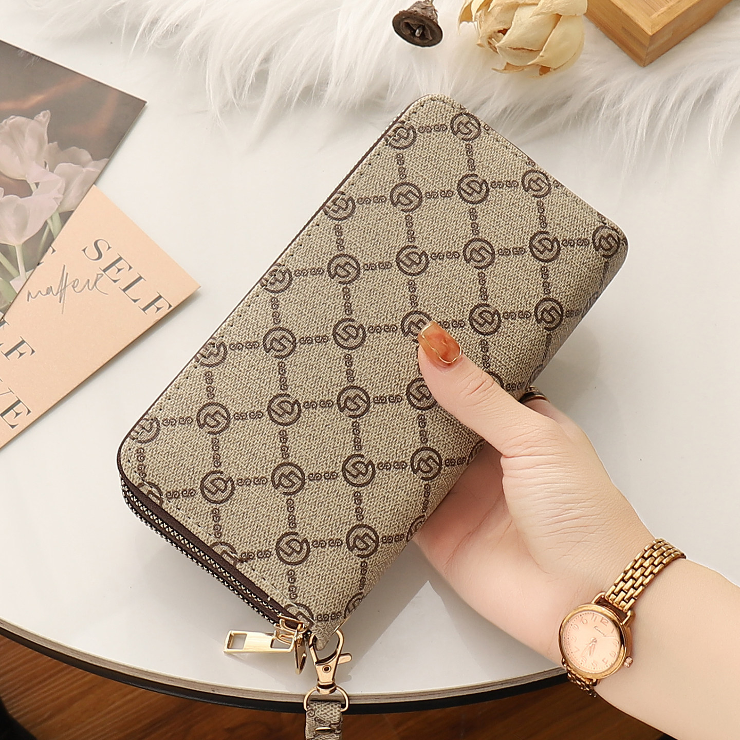 真皮质感新款女士手拿包长款拉链钱包双层妈妈手腕包大容量手机包