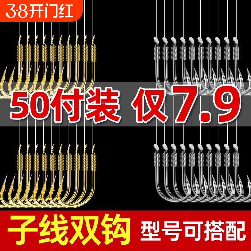 强硬锋袖鲫鱼钩进口子线双钩正品鱼线绑好成品钩野钓防缠绕有无刺