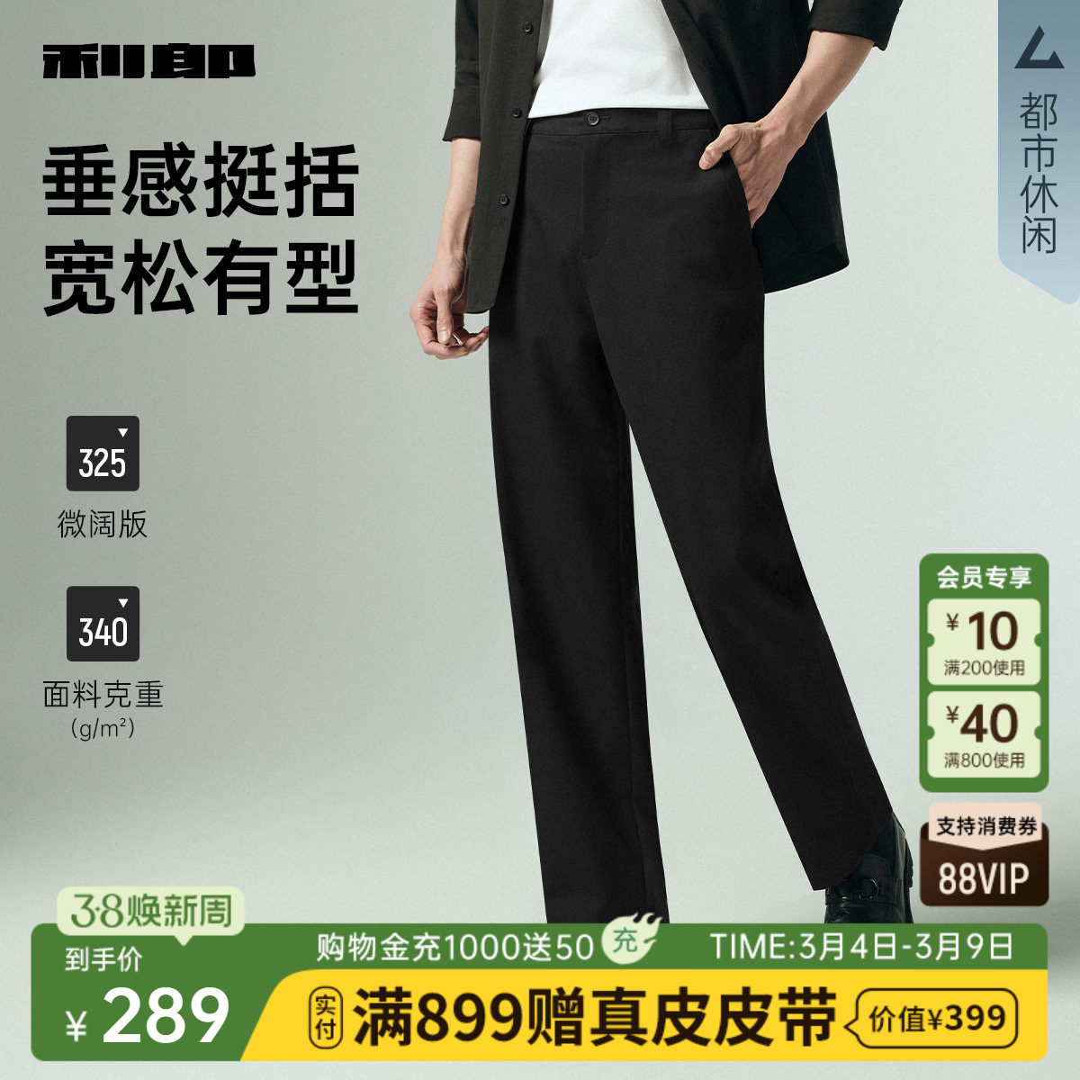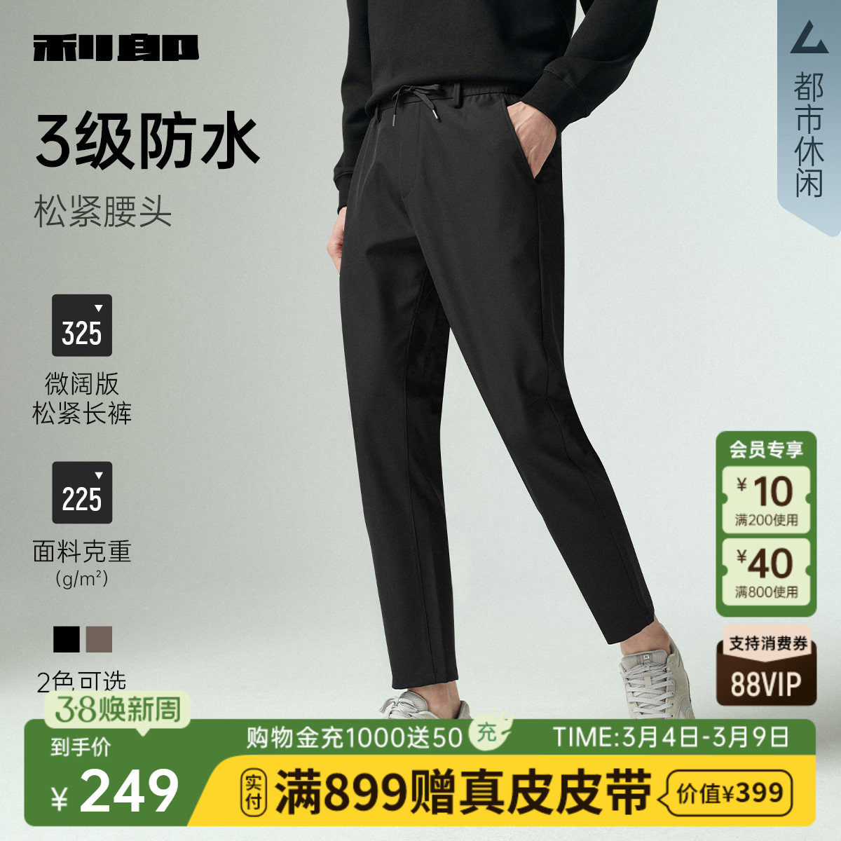 【松紧腰/防水/微阔】利郎休闲裤男士弹力长裤春秋款新款裤子男