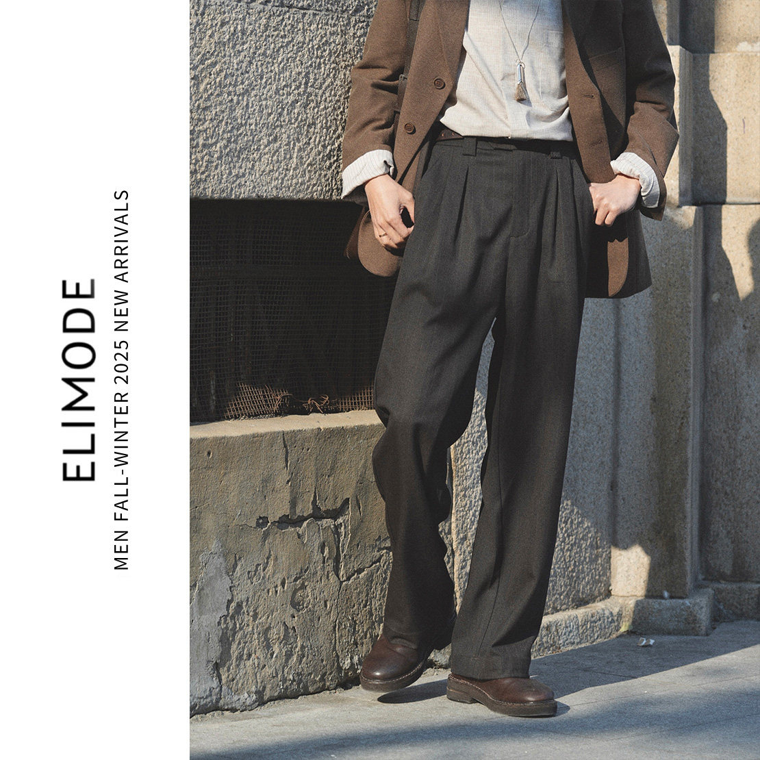 ELI【独树】四季款免烫双褶微阔通勤休闲透气暗条纹西裤直筒长裤