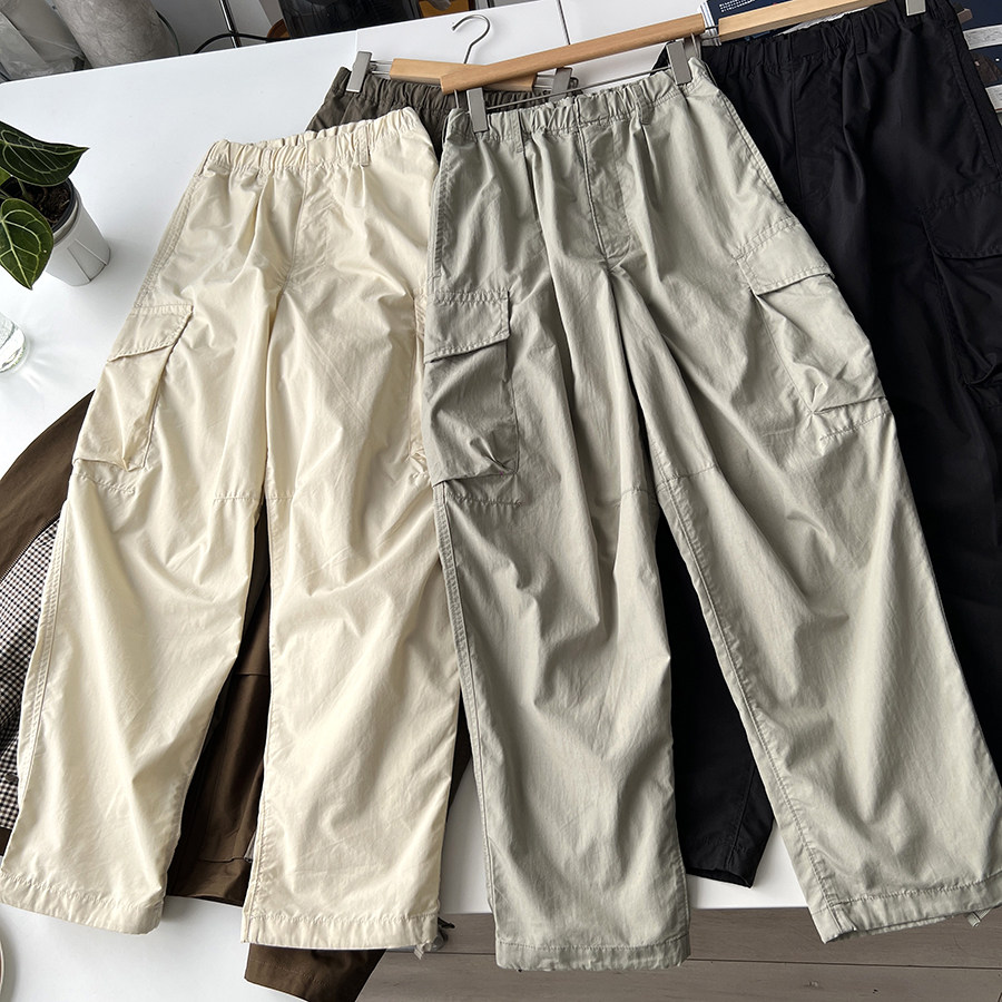 纯棉春夏季薄款宽松直筒休闲裤男士多口袋大码户外工装裤阔长裤子