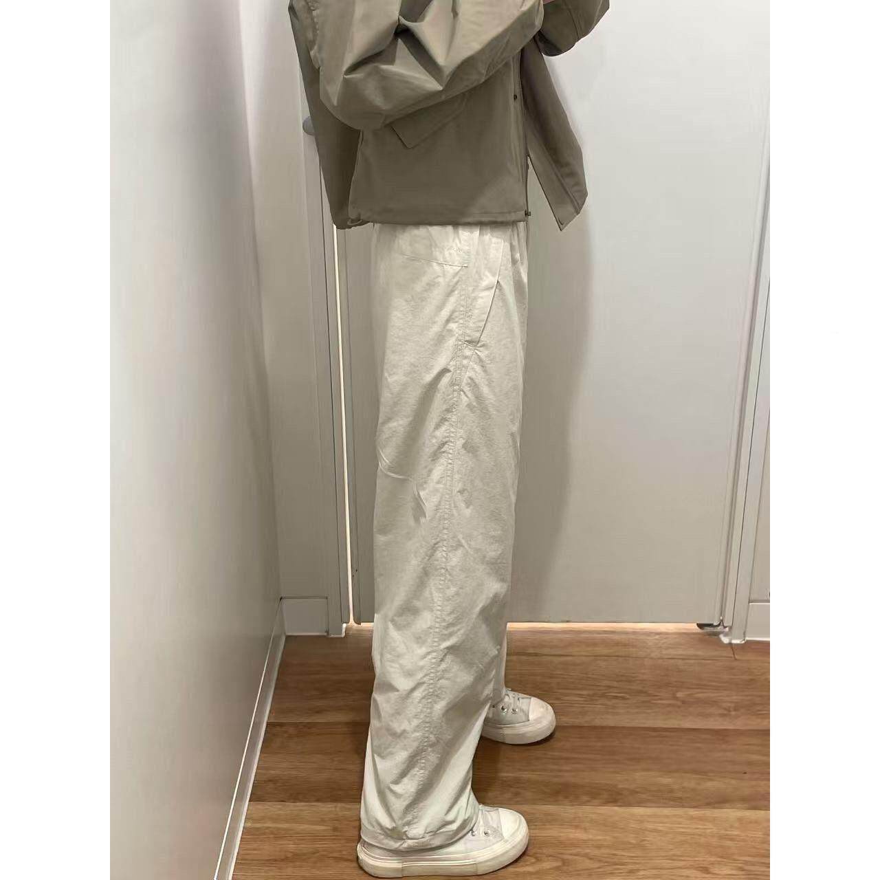 JZD 白/灰/黑 春装直筒宽松阔脚运动裤 百搭垂感弹力透气休闲长裤