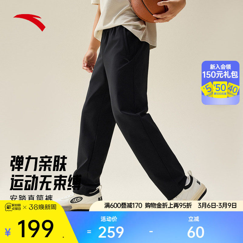 安踏针织运动裤男士春季休闲直筒裤挺阔通勤长裤子152531335N