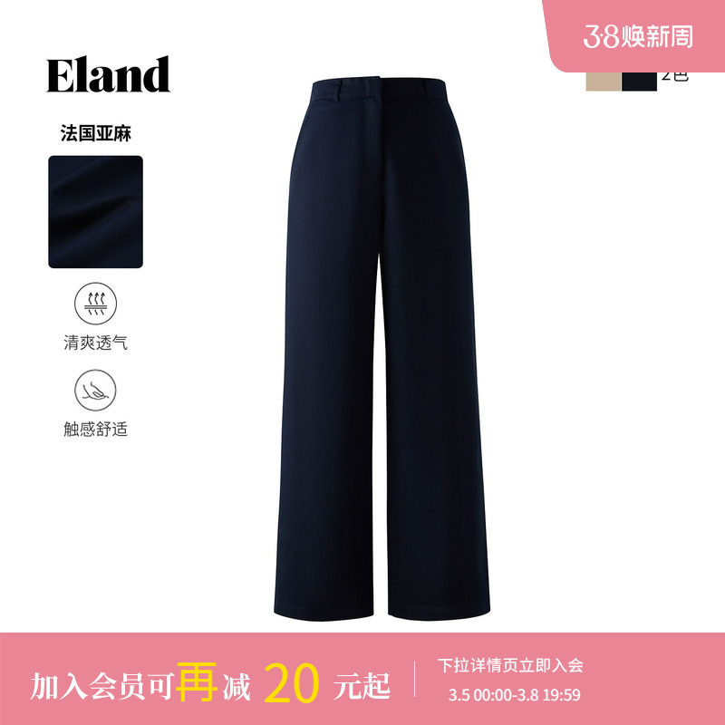 【法国亚麻】Eland衣恋休闲裤女微阔直筒通勤裤棉质长裤夏季淡人