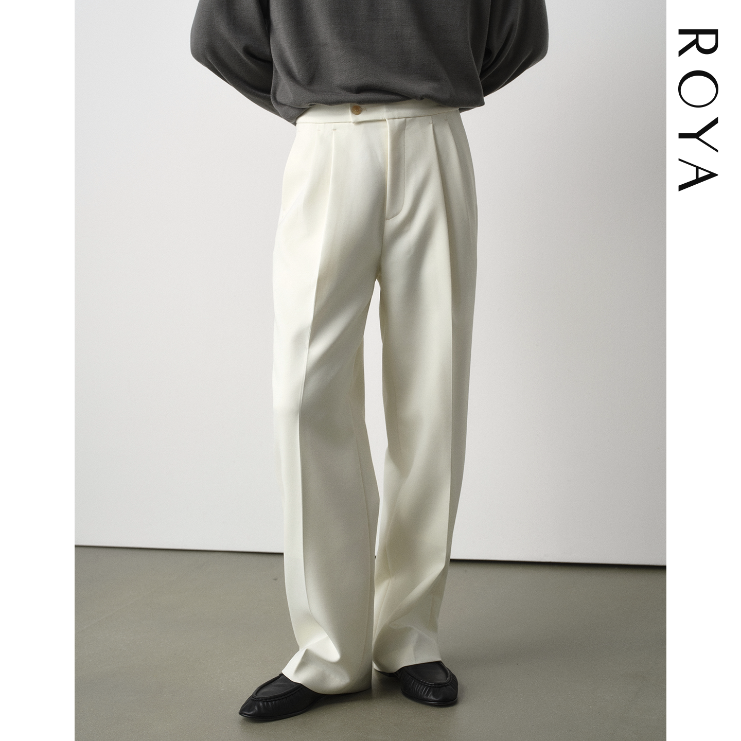 ROYA | 进口醋酸羊毛西裤半松紧腰直筒微阔松弛感休闲西装长裤