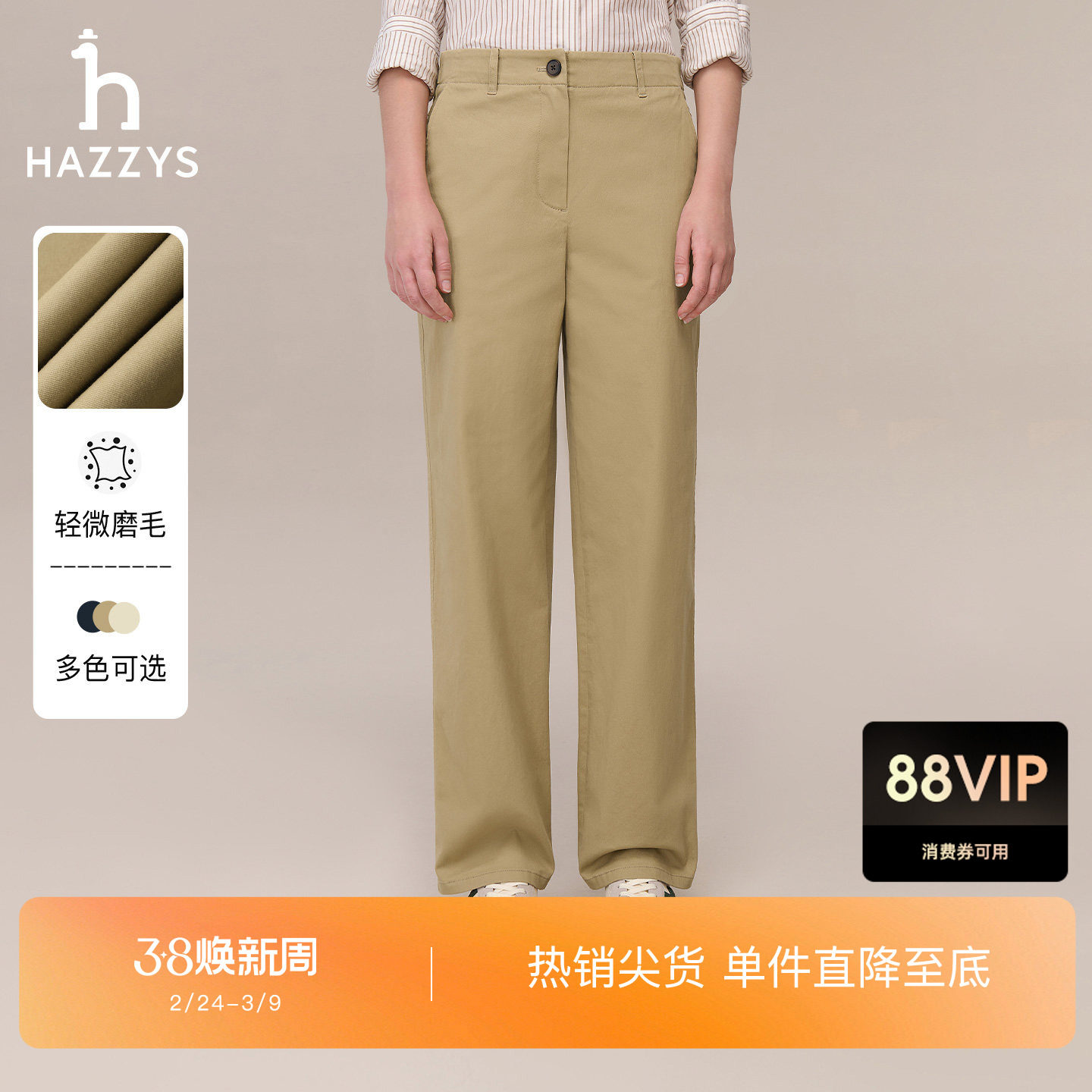 【秋季甄选】Hazzys哈吉斯宽松直筒休闲裤女时尚通勤简约微阔长裤