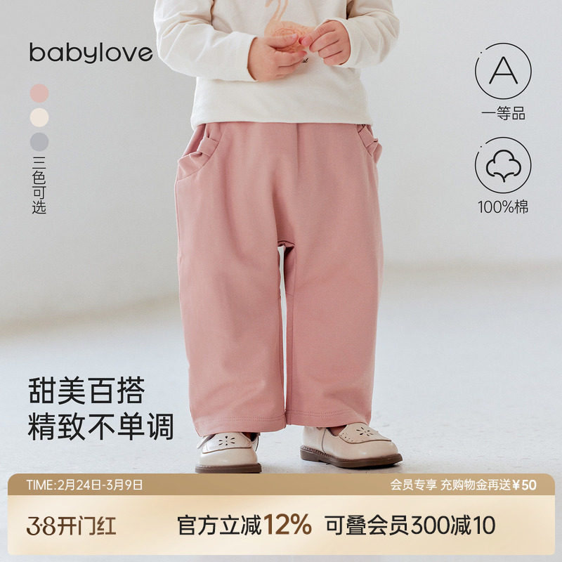 babylove女宝宝大pp裤春秋纯棉长裤宝宝宽松百搭柔软挺阔外出裤