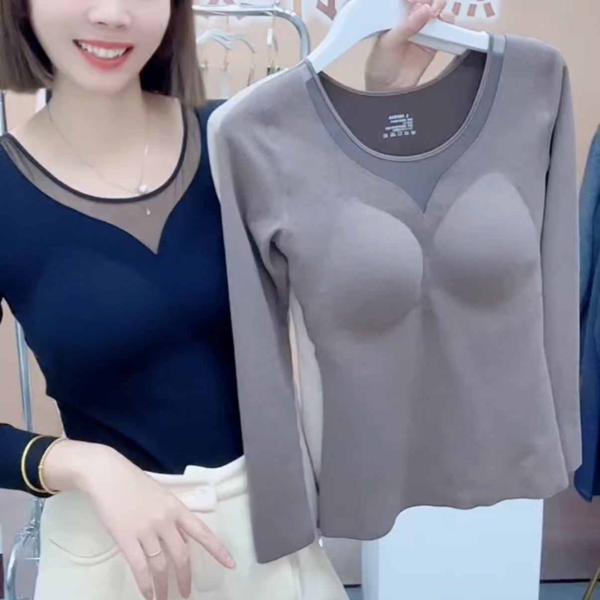 DPLAYSWEET【奶皮衣】免穿文胸保暖冬衣套装舒适磨毛加绒加厚打底