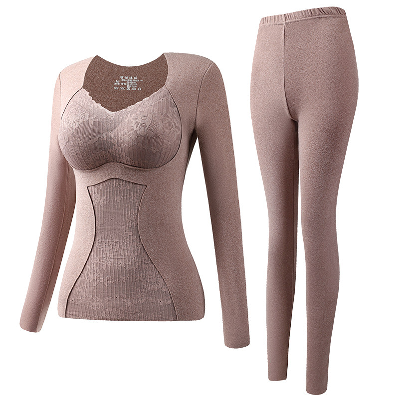 芬腾保暖内衣女士套装加绒加厚带胸垫免穿文胸秋衣秋裤发热打底衫