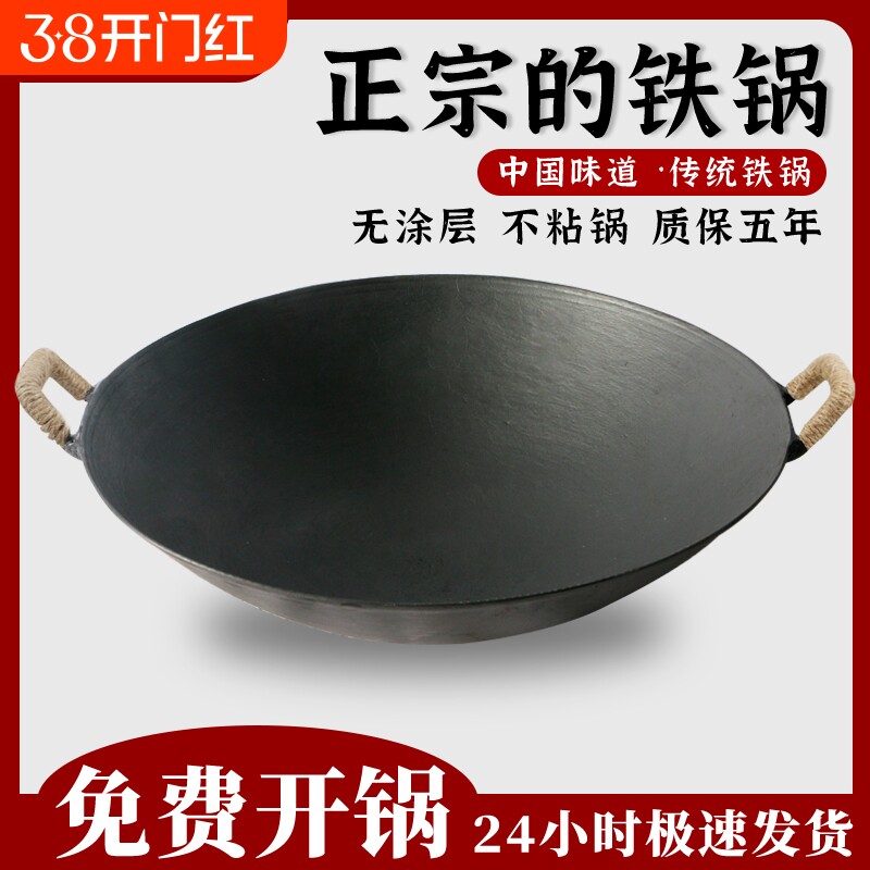 超轻铁锅炒锅生铁铸铁锅老式家用炒菜锅无涂层官方陆川铁锅免开锅