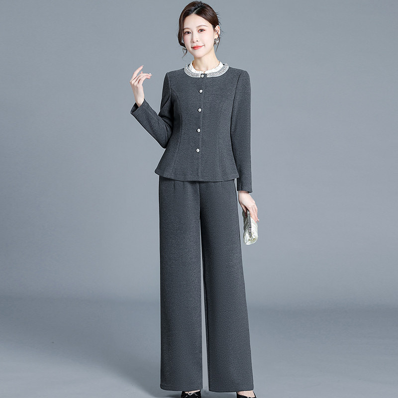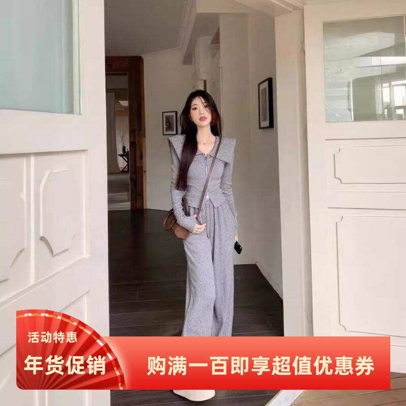 - 阔腿裤毛呢套装女冬