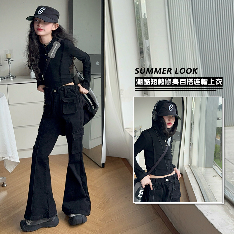 女童工装裤两件套2025春秋新款洋气时髦修身显瘦休闲马蹄裤套装
