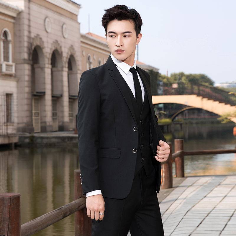 西服套装男士三件套商务职业正装小西装韩版修身伴郎新郎结婚礼服